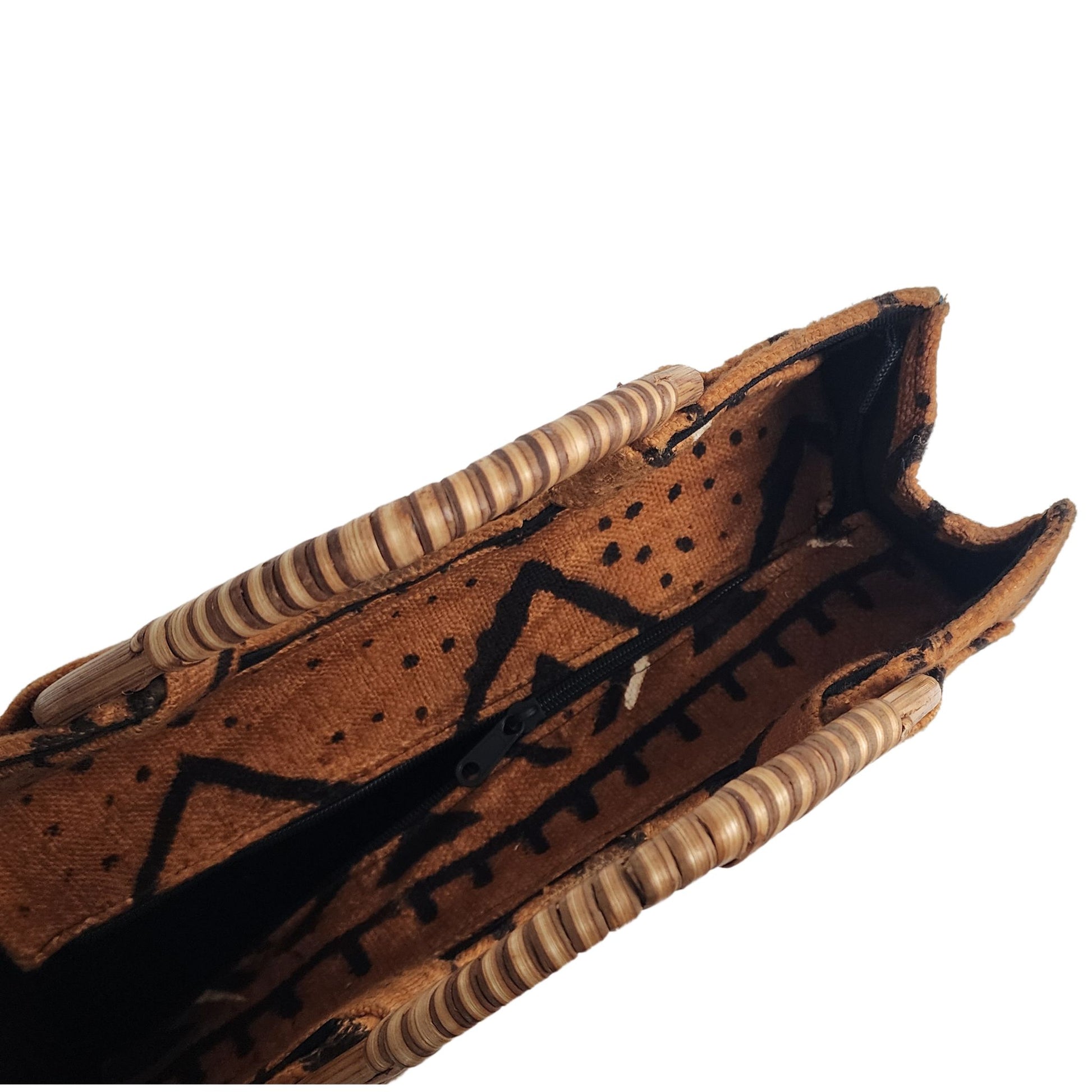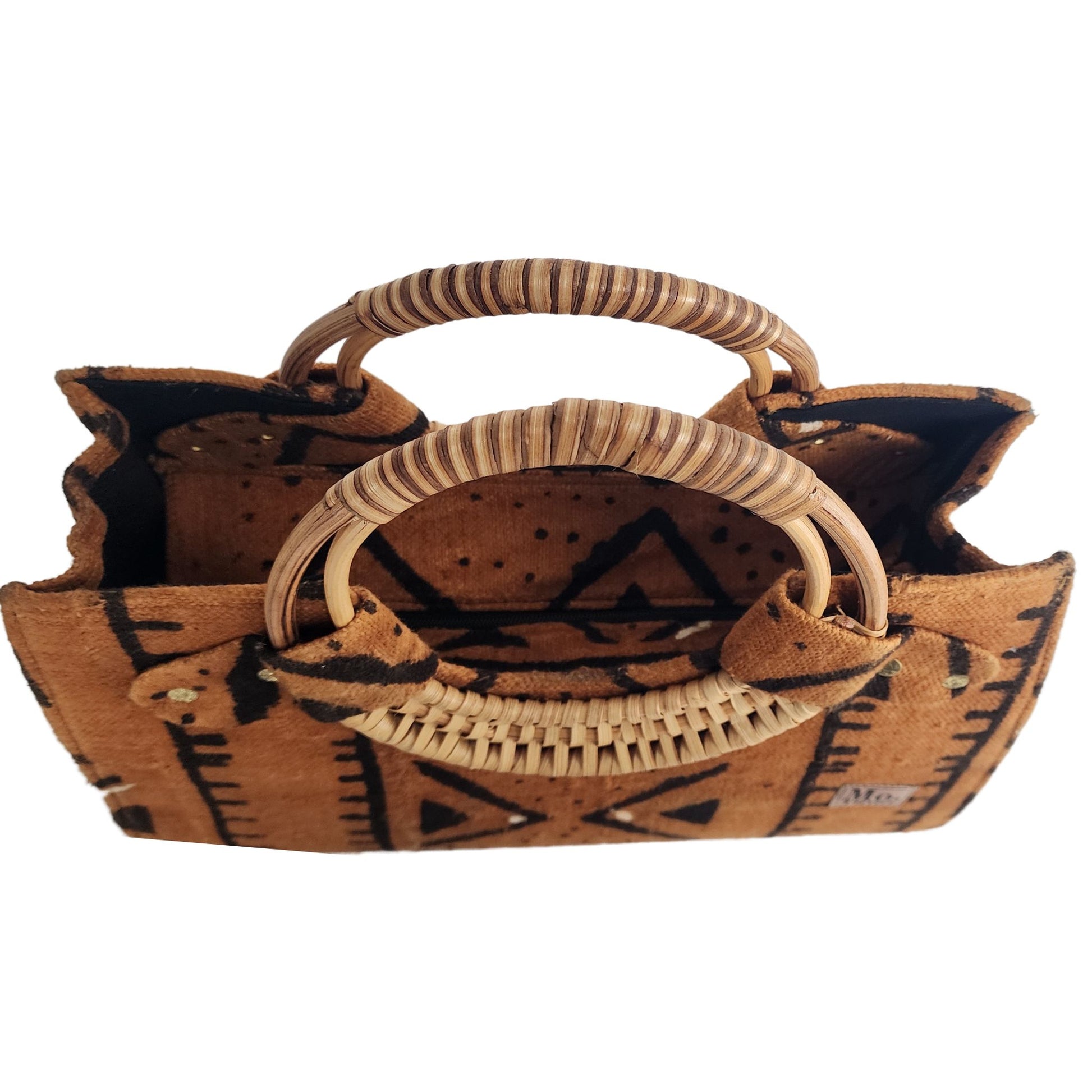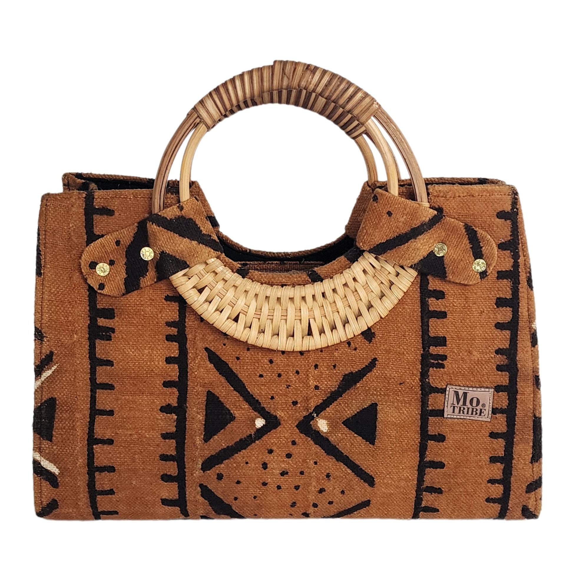 Introducing the Nasika Tote, a stunning handbag crafted from rich mudcloth. This traditional Malian fabric is renowned for its unique texture and cultural significance, making each bag a wearable piece of art. The intricate patterns and earthy tones of the mudcloth create a sophisticated look that's both elegant and eye-catching. With its spacious interior, sturdy cane handles, and inner pocket, this bag is as functional as it is beautiful. Every purchase supports women from low-income weaving communities in Accra, Ghana, empowering them to thrive. Make a statement and celebrate cultural heritage with the Nasika Tote