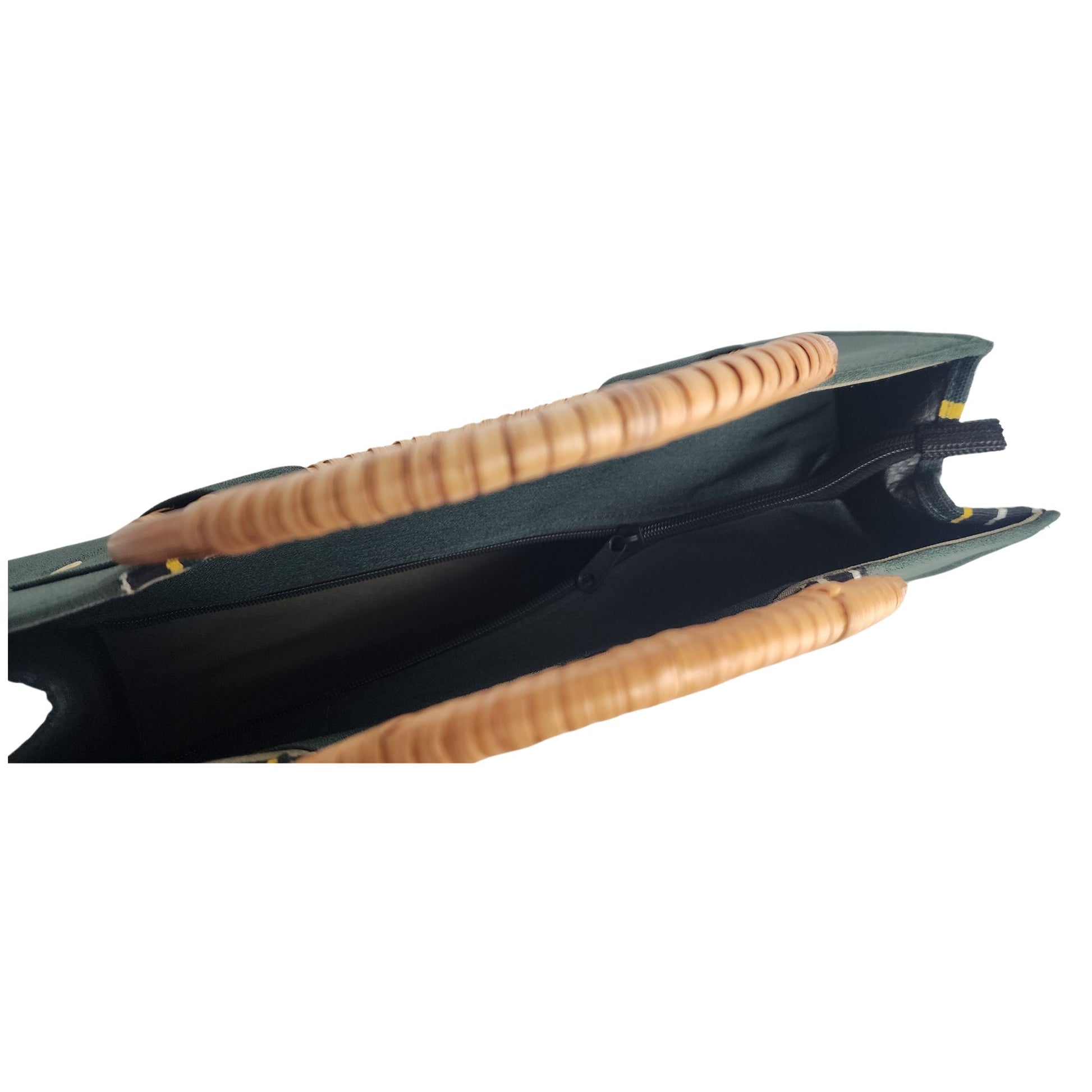 If you love elegant and classy handbags and love making a statement then this bag is for you! With sturdy and gorgeous cane handles and a stunning combination of colors from the Fugu fabric, the bag is practically royalty. The Fugu or Smock fabric is a luxury native fabric worn mostly by the royals of the Northern Tribes of Ghana. This bag also comes with an inner pocket with a zip fastening and provides lots of space, it's even big enough for a small laptop! As if that was not awesome enough, when you purchase a bag from this Mo Tribe collection, you contribute towards empowering a woman from the low-income weaving community in Accra, Ghana where these bags are made.